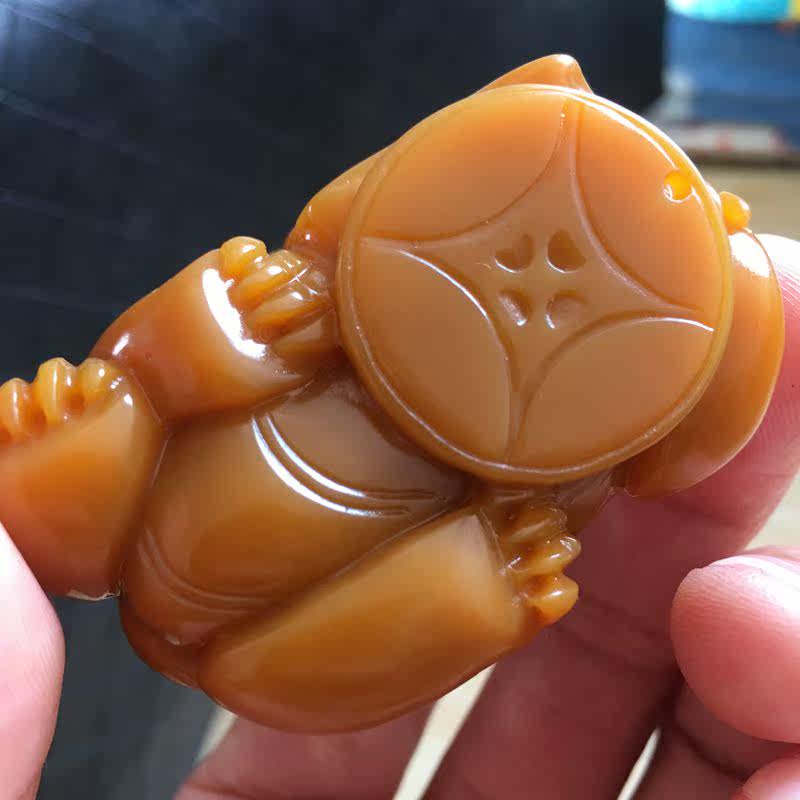 Myanmar Yellow Leopard Myanmar Material Yellow Dragon Jade Chicken Oil Yellow Imperii King Yellow Bully Wang Leu's handlebar piece of fine craftsman's hand engraving texture old