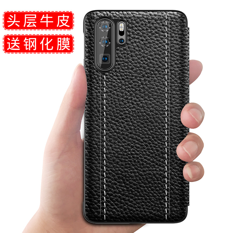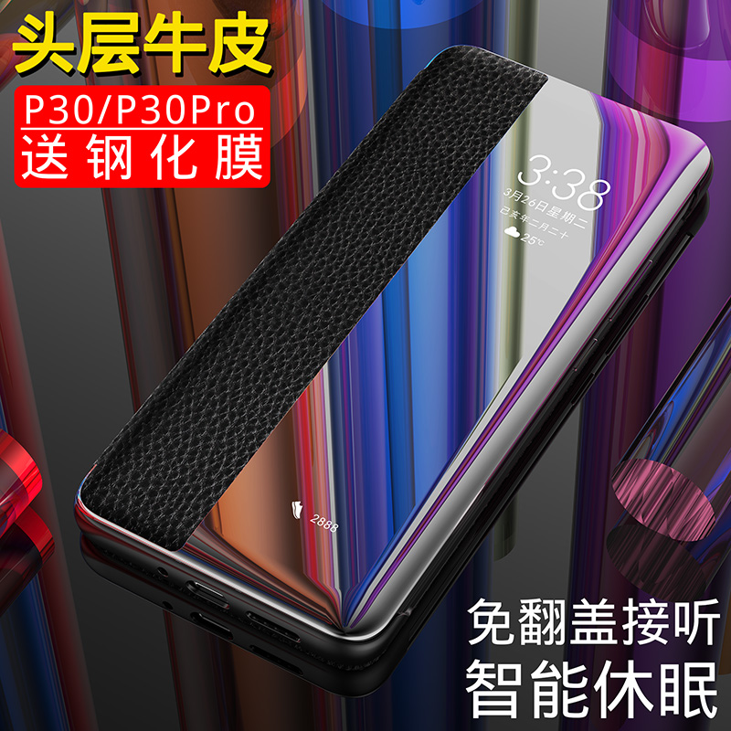Applicable Huawei p30pro mobile phone protection shell genuine leather mate30 leather sleeve p30 clamshell type intelligent protective sleeve limited edition