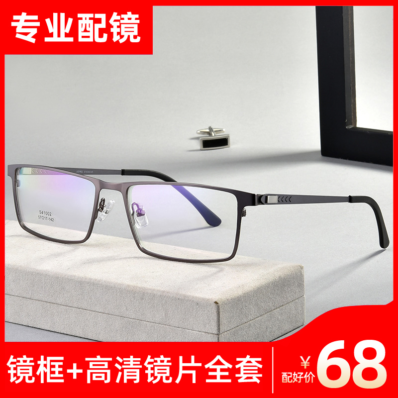Myopia Spectacles with Degrees Men Business Large Face Ultra Light Full Frame Metal Matching LENS FLAT MIRROR FINISHED EYES