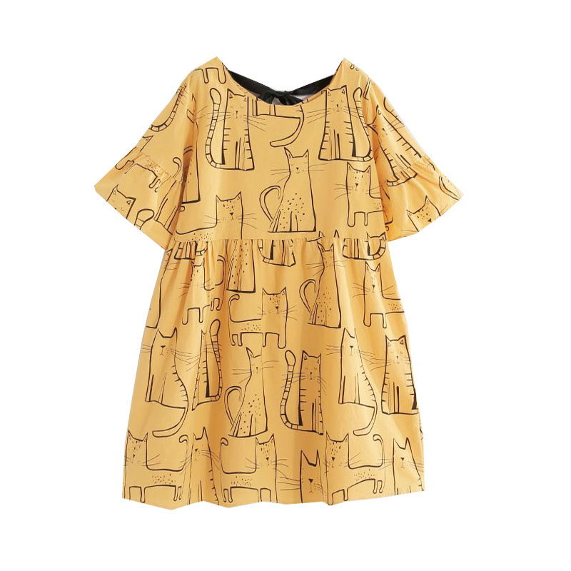 Gestational Woman Dress 2022 Women Summer Dress New Medium Long Version Round Collar Short Sleeves Large Size Easy to Dress Foreign Dress Kitty Pregnant Woman Dress
