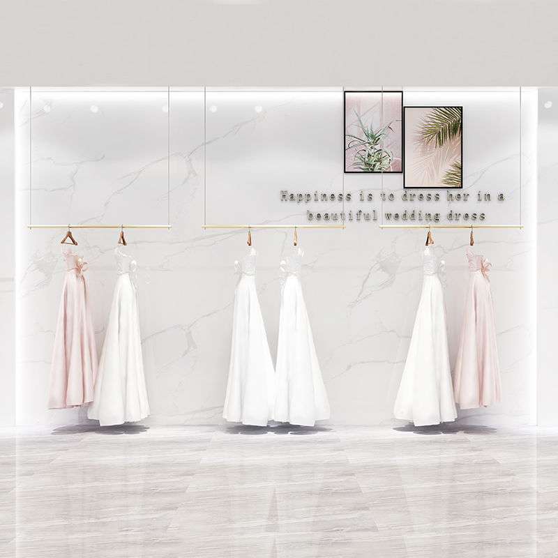 Iron Art Clothing Store Show Rack Wedding Dress Shop Hung Dresses Shelves General Photo Gallery Hanger Hanging Shelf Upscale Custom