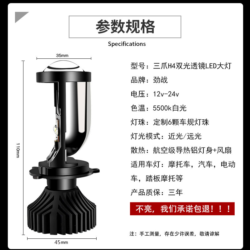 H4 lens headlights are integrated with far and near light, a width light T10 is inserted into a positive white light, a width light T10 is inserted into an ice blue light, and a width light T10 is inserted into a blue light.