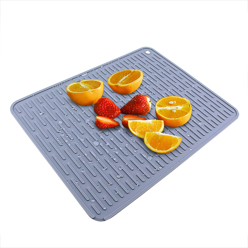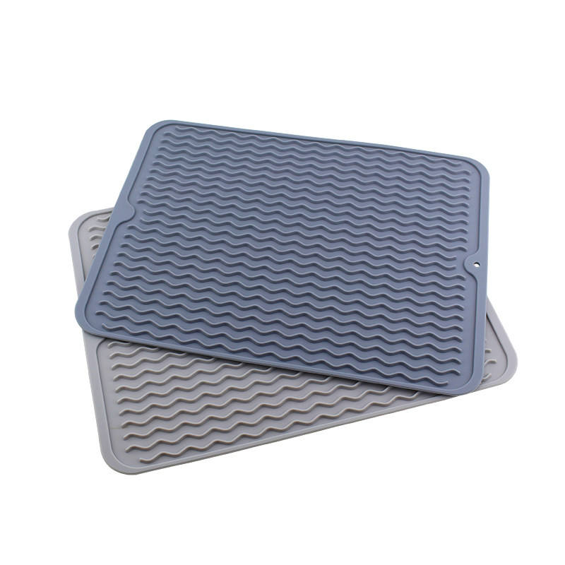 Household silicone drainage mat kitchen anti-scalding silicone pad tableware tea set drain board bar countertop drain blue