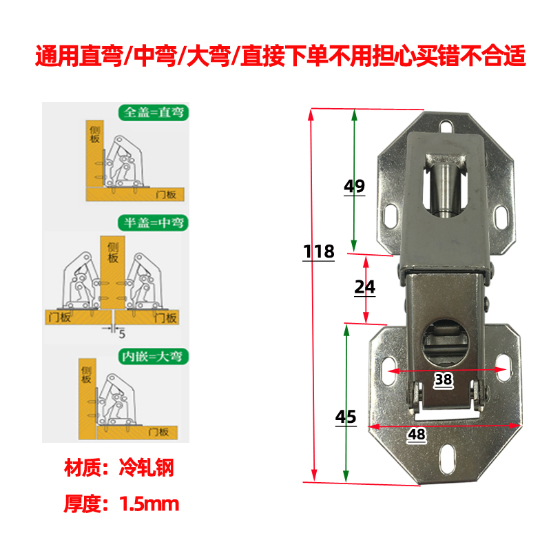 Universal non-punching cabinet door hinge clothes whole closet cabinet door free of notching door hinged bridge Ming-fit hinge furniture 5 gold accessories