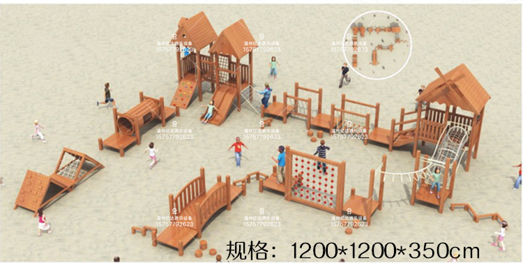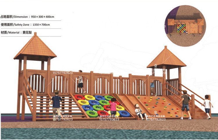 Customize Non-Peel Yellow Flower Pear Wood Sliding Ladder Kindergarten Outdoor Climbing Frame Climbing Net Combo Feel Integrated Training Toy