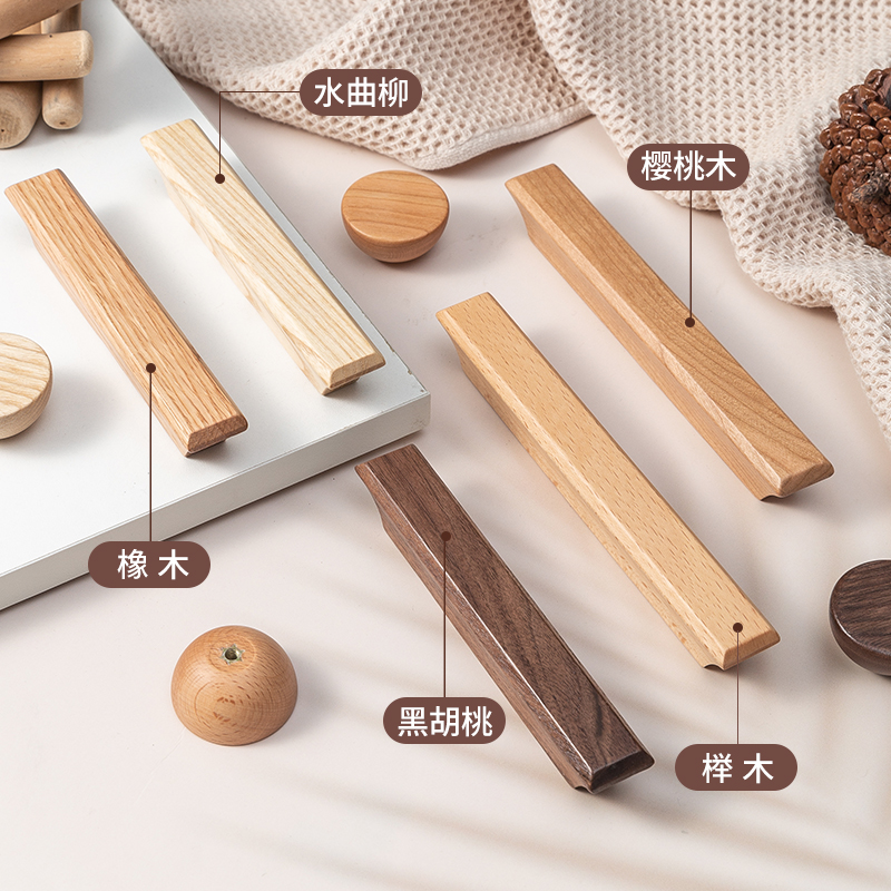 Modern minimalist cabinet door solid wood handle log drawer wardrobe overall cabinet single hole round tatami wooden handle