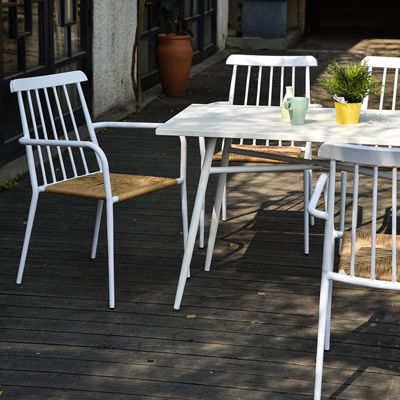 Springside courtyard garden outdoor tables and chairs simple casual white rattan chairs cafe hotel terrace outdoor dining table and chairs