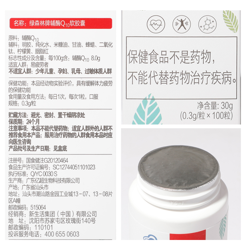 Coenzyme Q10 rice bran oil beeswax gelatine glycerol purified water titanium dioxide lemon yellow carmine red