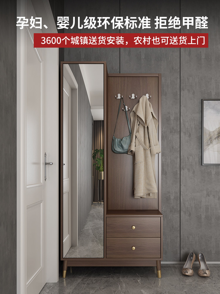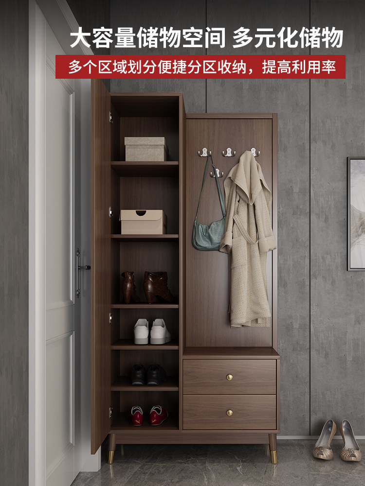 Nordic simple large-capacity entrance cabinet shoe cabinet integrated modern household solid wood feet assembly shoe changing stool