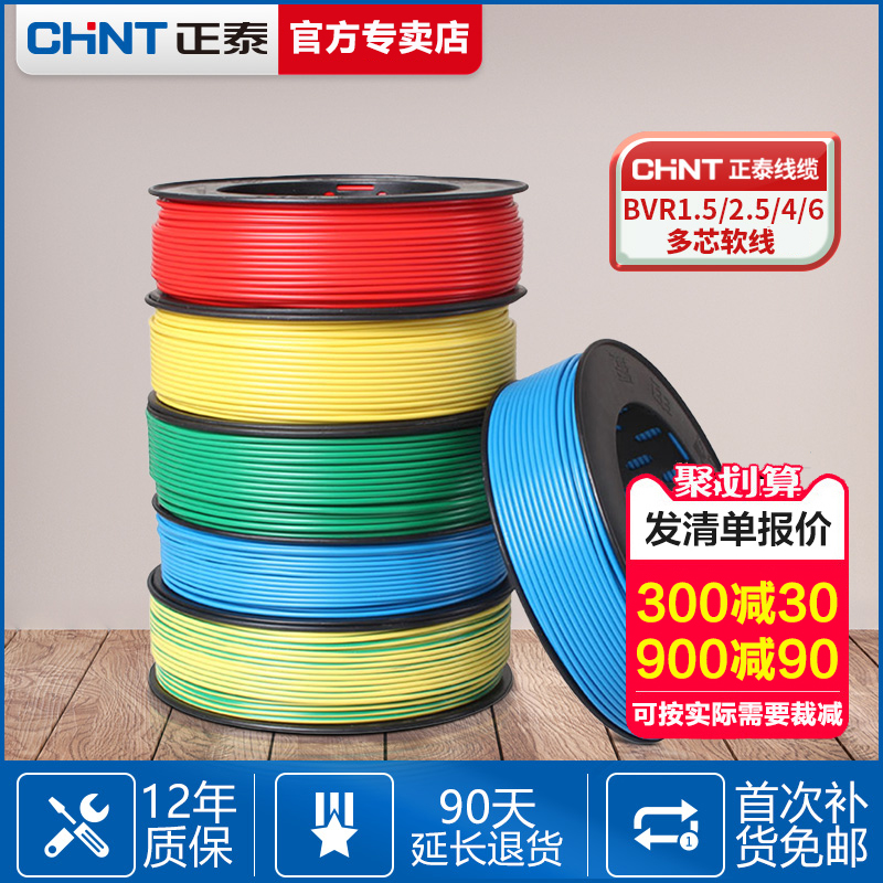 CHINT wire Household flexible wire multi-strand copper core wire 2 5 square 1 5 GB BVR4 copper wire 6 10 Home improvement cable