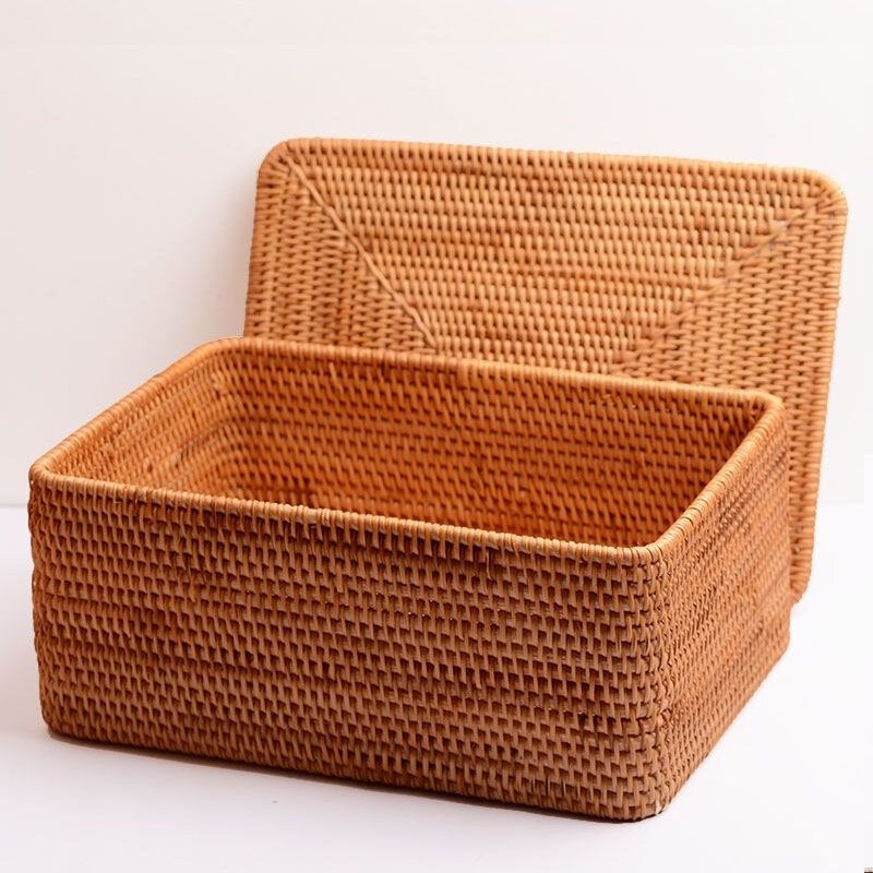 Vietnamese rattan with lid storage basket finishing basket desktop coffee table clothing toy living room sundries storage basket storage box