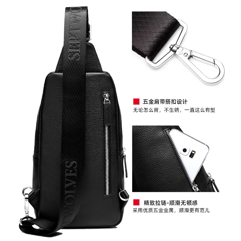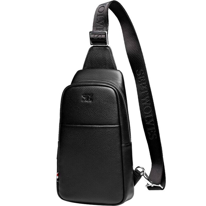 Seven Wolves Chest Bag Men Genuine Leather Head Layer Bull Leather Men's Bag Casual Single Shoulder Bag Men's Damp bag Inclined Satchel Bag
