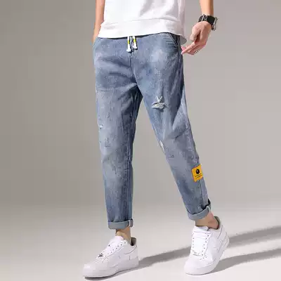 Hong Kong high-end broken jeans men's Tide brand loose straight tube 2020 spring new casual long pants men