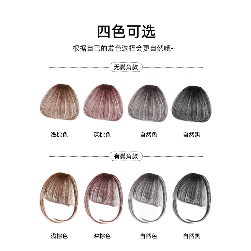 Full real hair textured (natural color) with temples full of hair textured (natural black) with temples full of hair textured (light brown) with temples full of genuine hair textured (dark brown) with temples full of genuine hair