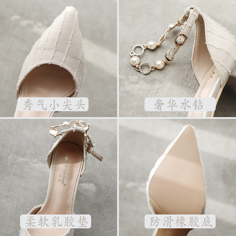 2022 Exploits High Heels Shoes Woman Fine Heel Ladies Wind Shoes New Coarse Heels 100 Hitch Summer Pointy Bag Shoes Woman
