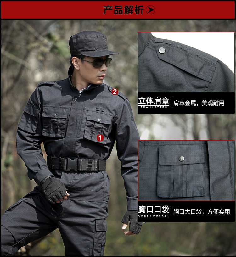 Black security combat training suit suit male special forces combat training suit wear-resistant autumn military uniform overalls training camouflage suit