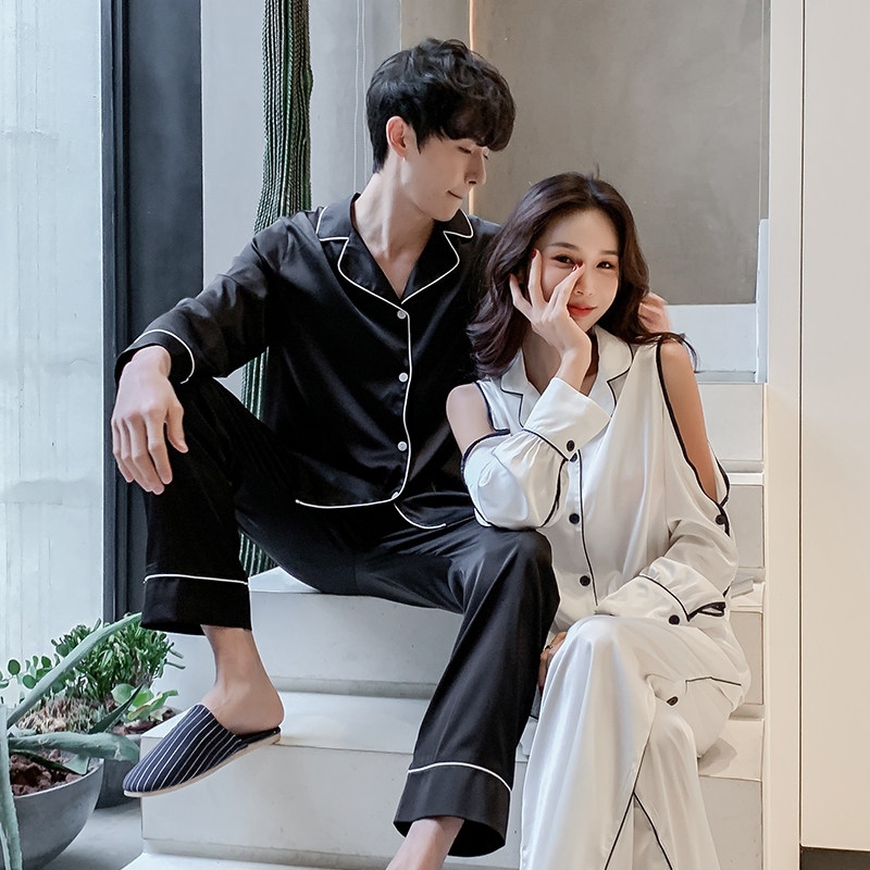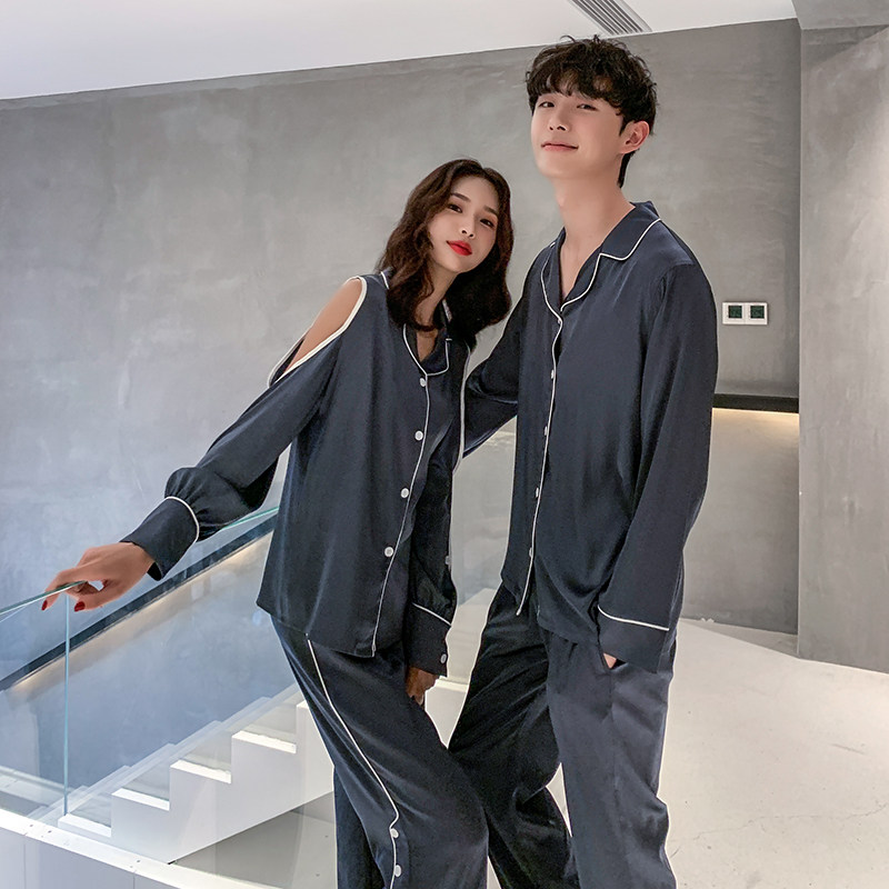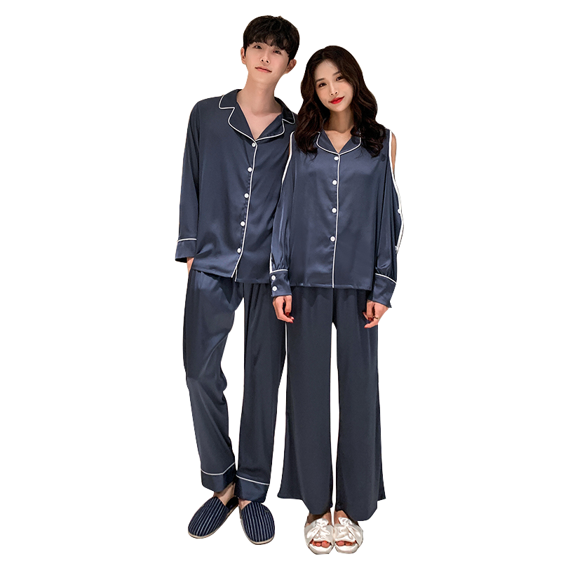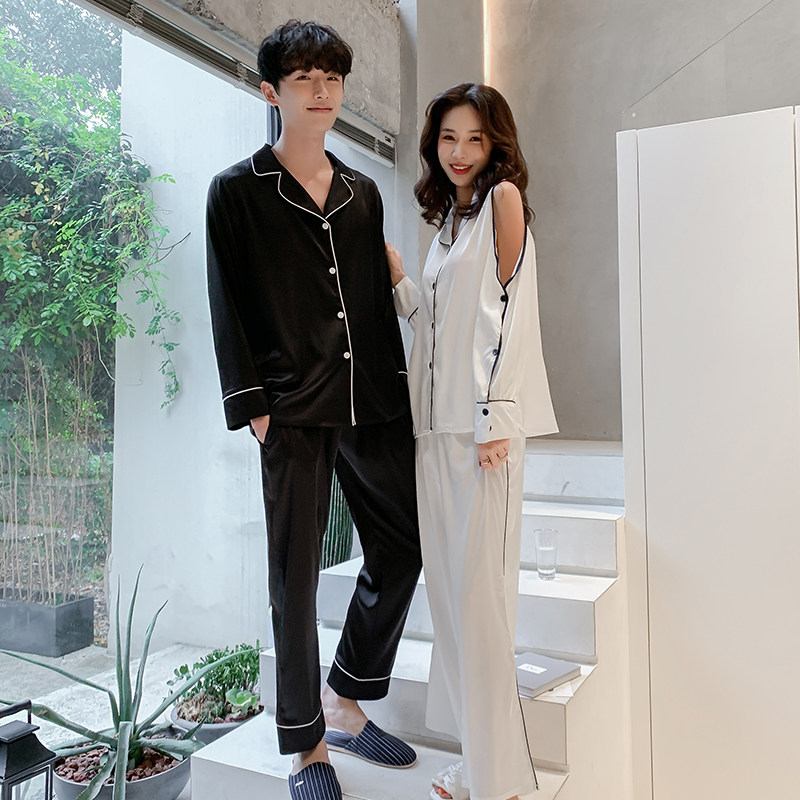 Pajamas women's 2022 new spring and autumn high density and high honey with the same style couple pajamas ice silk home service two-piece suit Nordic