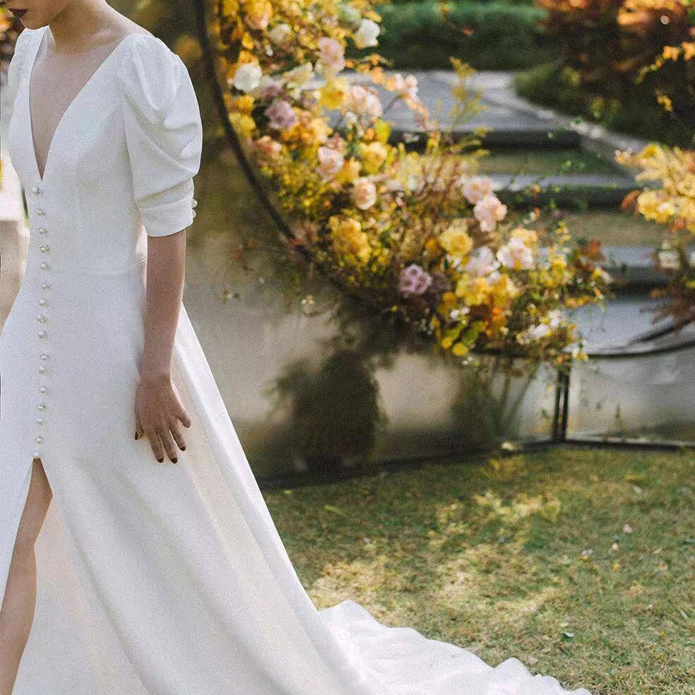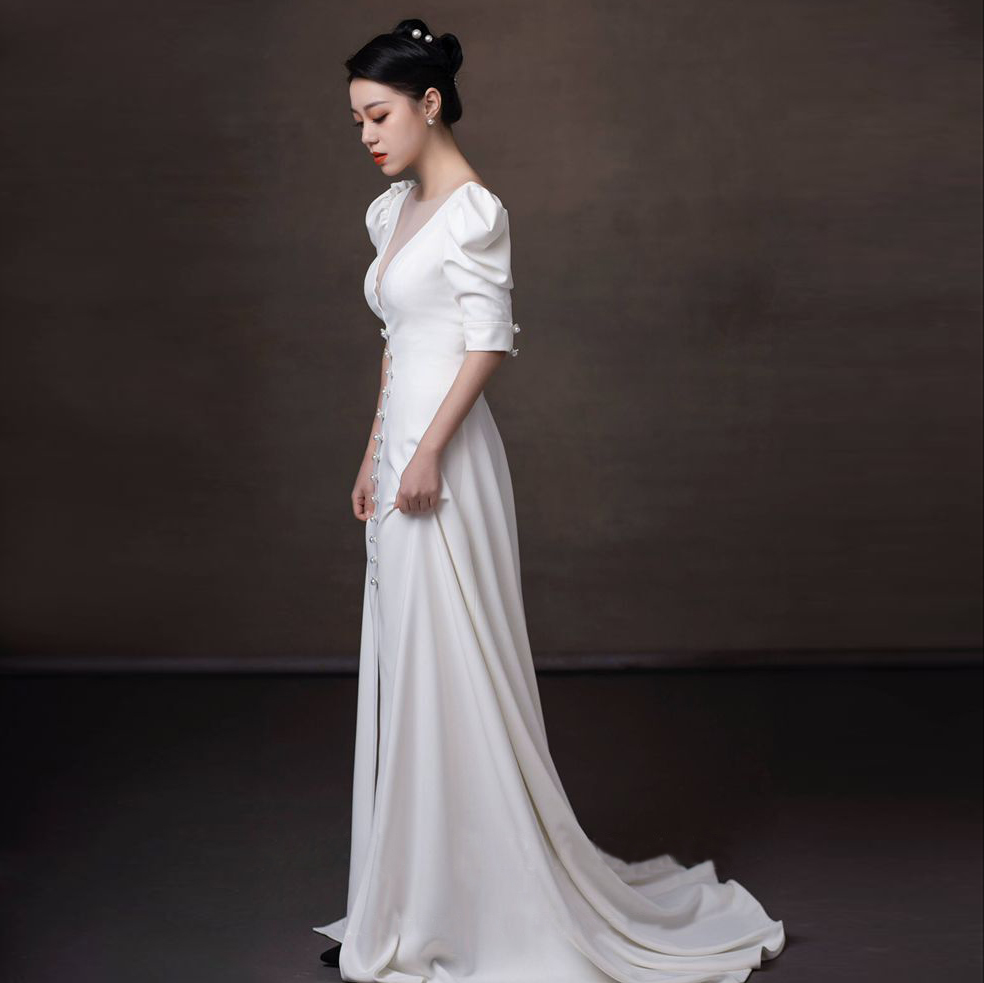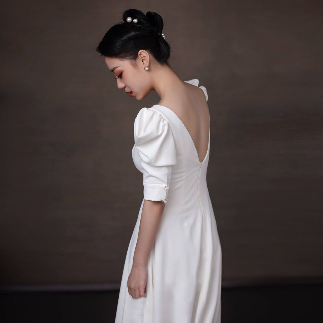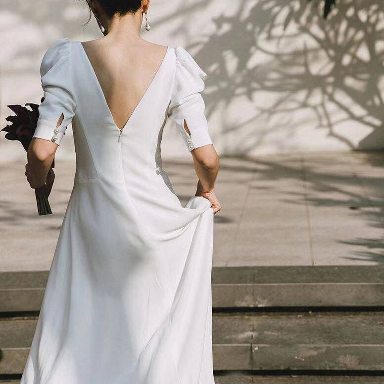 French light wedding dress super fairy Hepburn travel shoot daily light and simple satin out gauze thin retro small dress woman