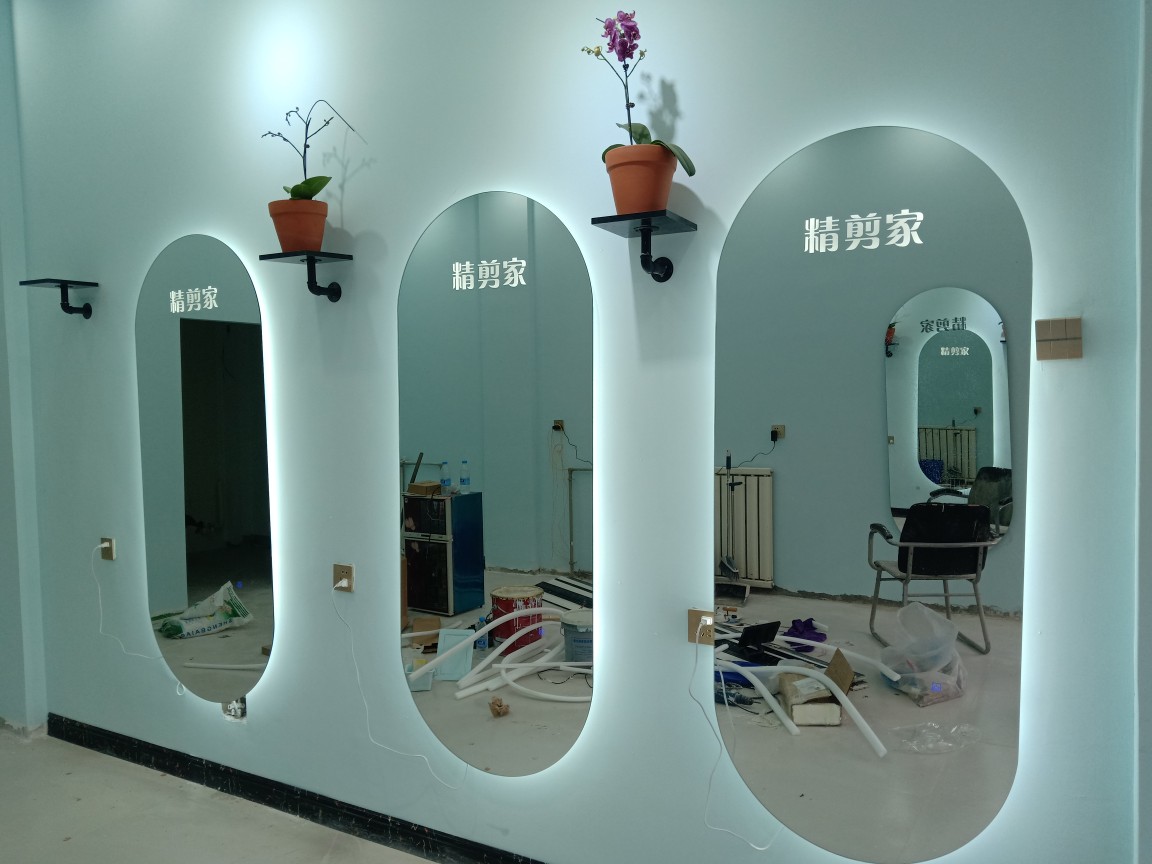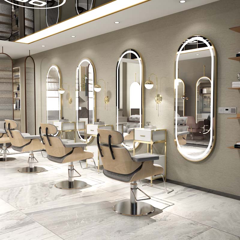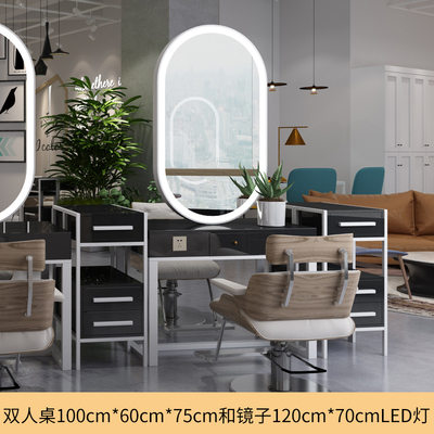 Simple hairdressing shop mirror table modern style hairdressing mirror European style hair salon special mirror hanging wall with lamp trendy hair cutting mirror