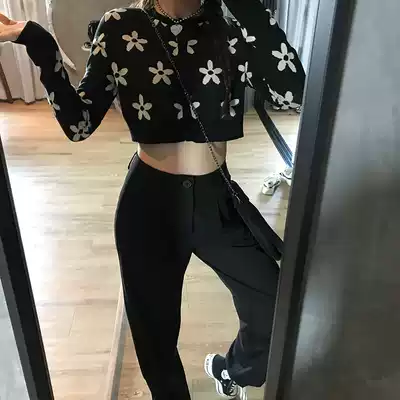 Wang Girl's shop straight suit pants spring and autumn casual loose high-waisted black thin drape wide-leg pants