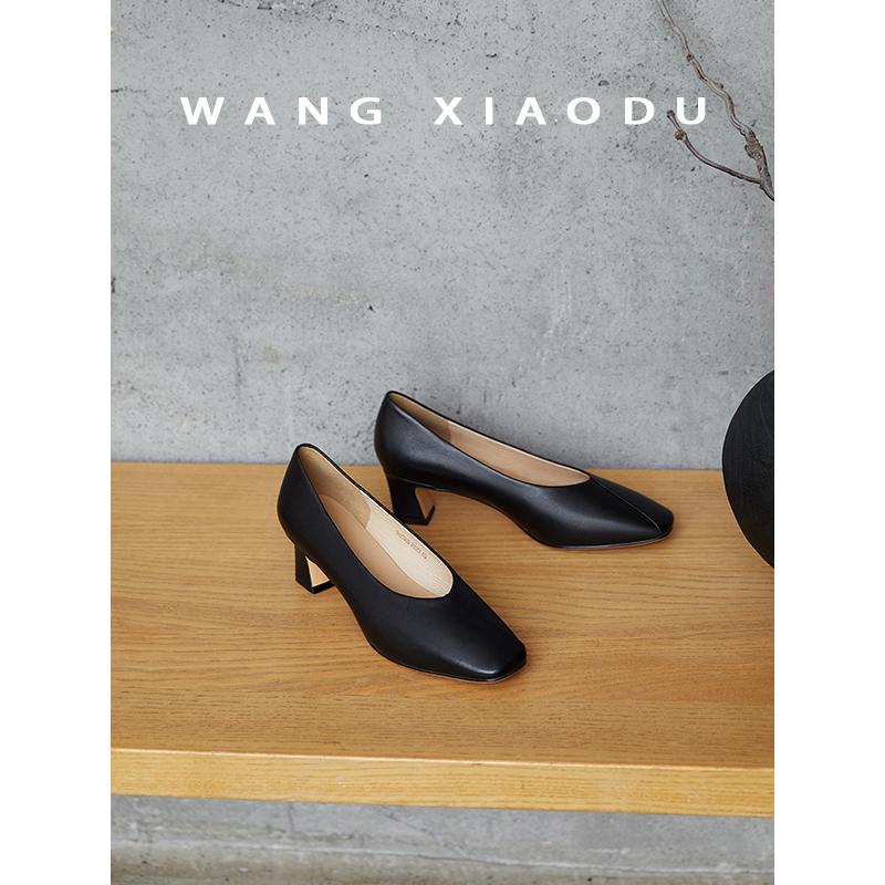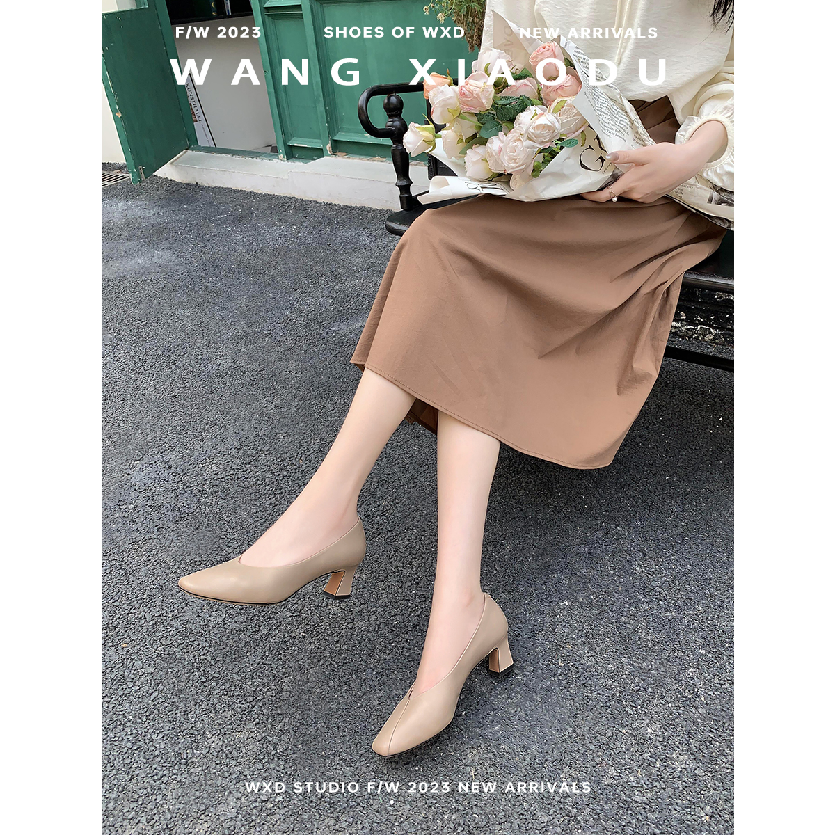 (Wang Xiaodu) Enjoy for a moment ●Grandma shoes Sheepskin shallow mouth commuting single shoes for women thick heel genuine leather retro women's shoes