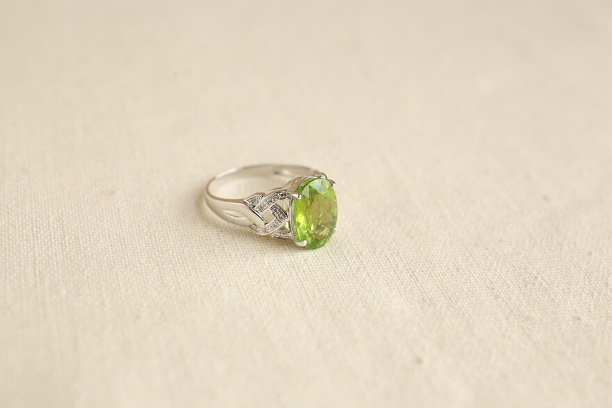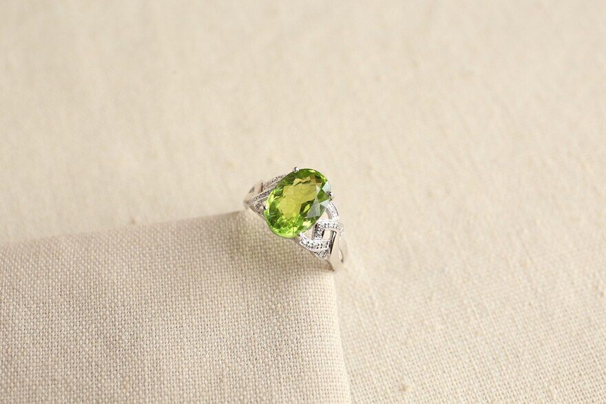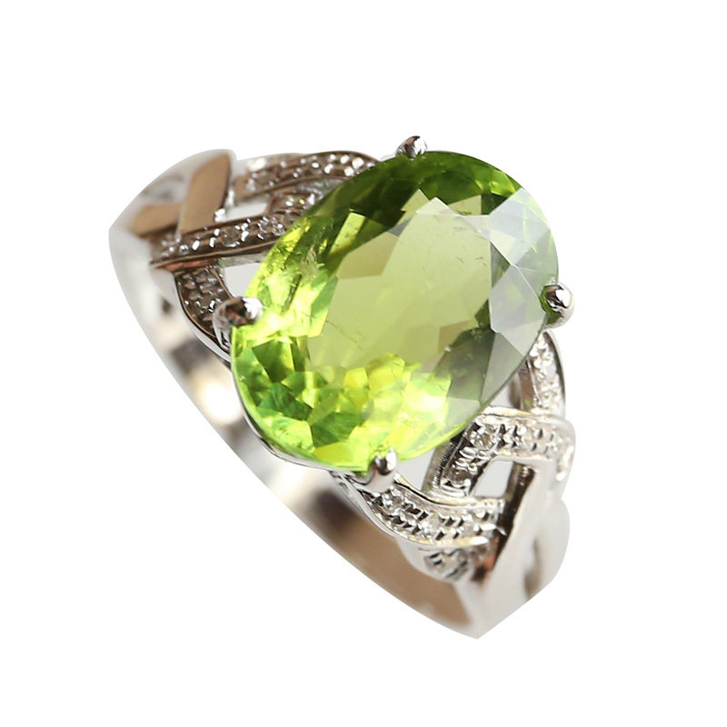 Main stone 3 5 carat green tourmaline ring 18K gold diamond set weight 3 3 grams
