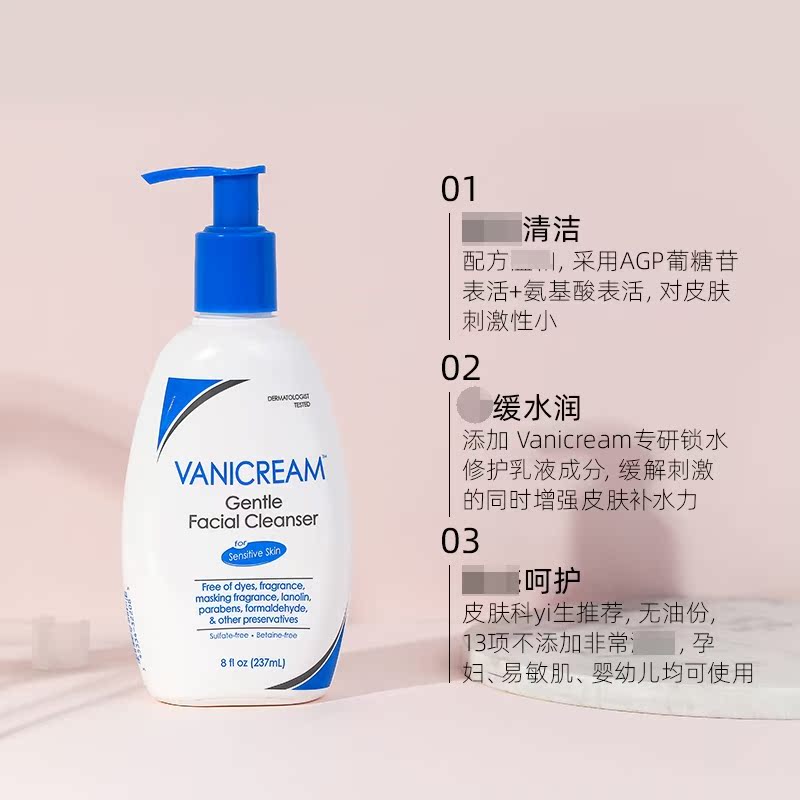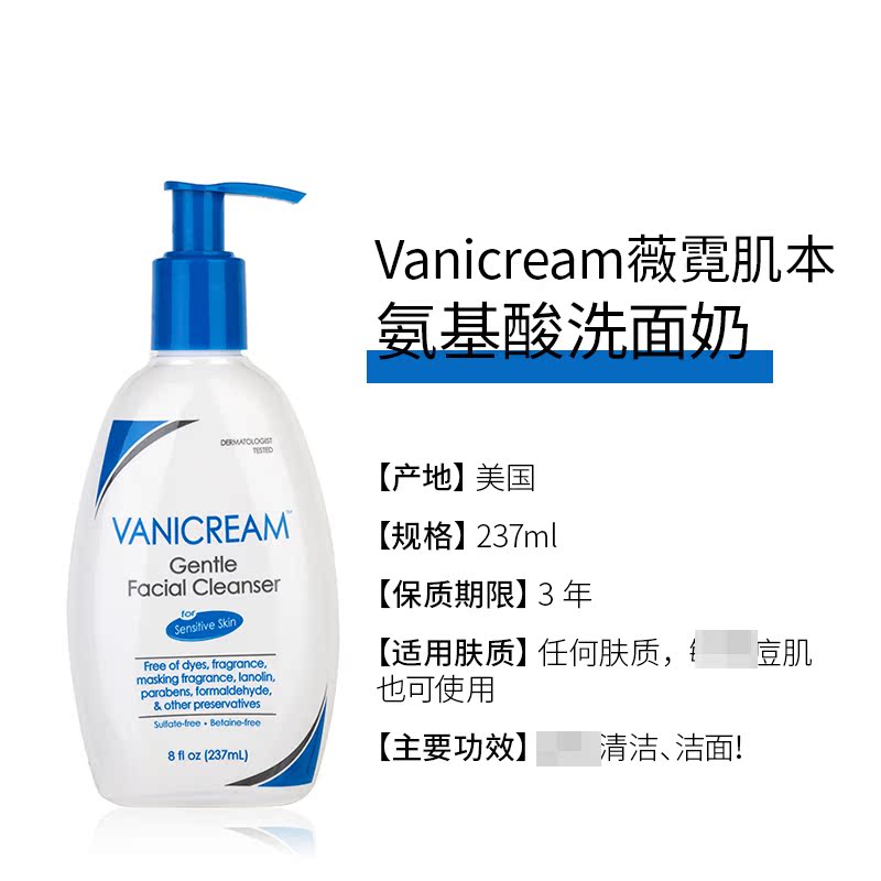 Double pipe has a bubble amino acid finish -- Vanicream Vernet's Facial Cleansing Cream for men and women 237ml not plucked