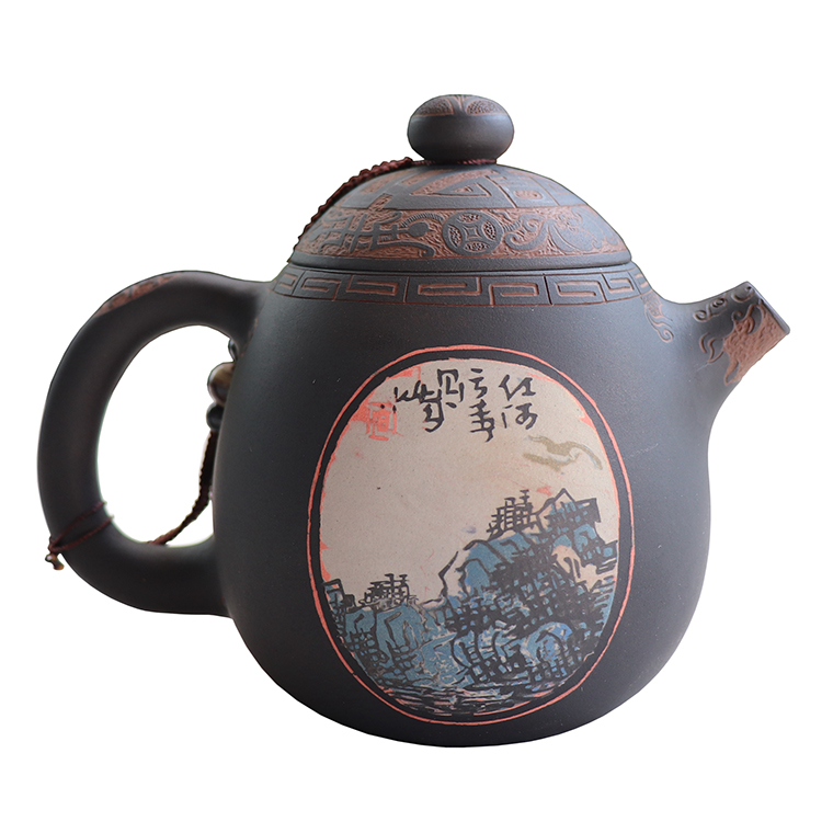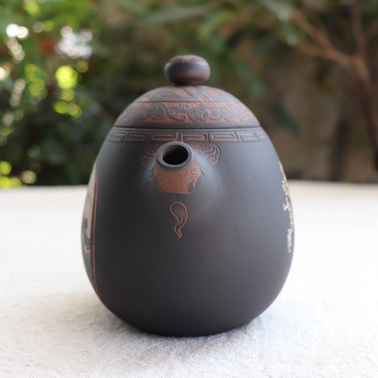 Yunnan Jianshui Purple pottery tea set Master Xiang Bingcheng Black pottery handmade pot Exquisite color filled pottery dragon egg pot Non-purple sand