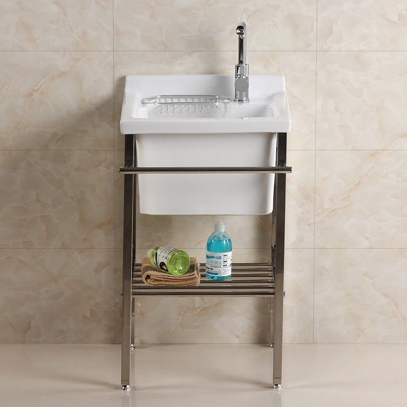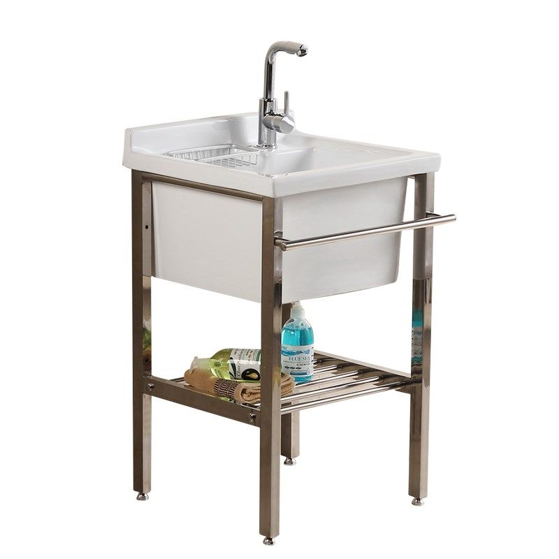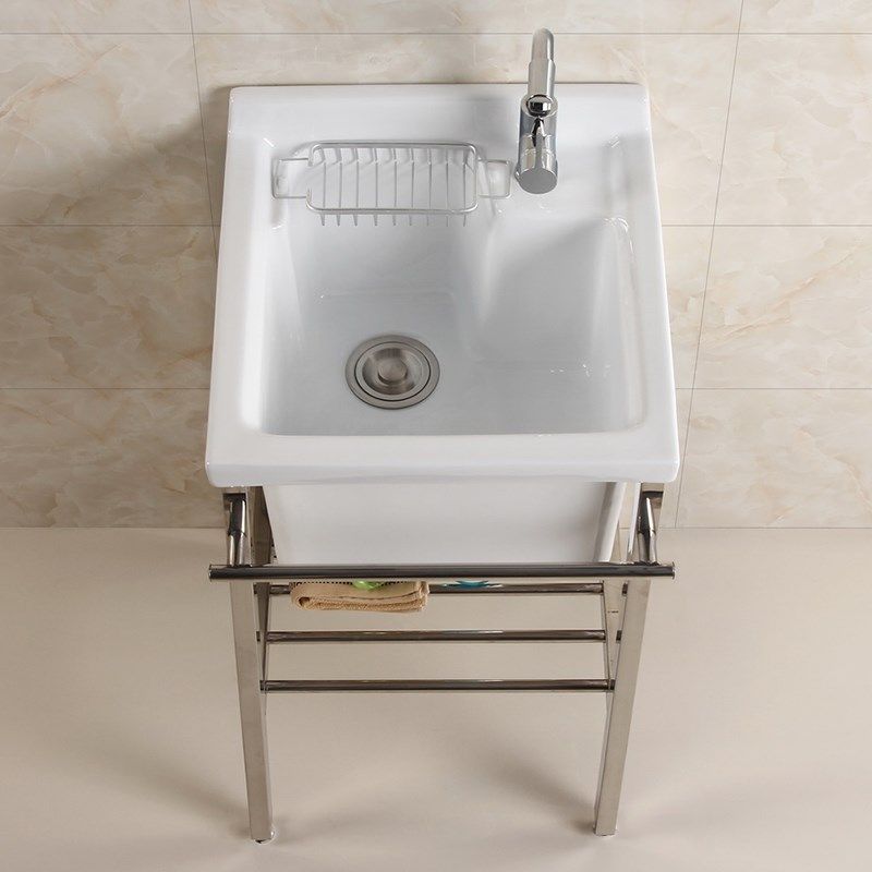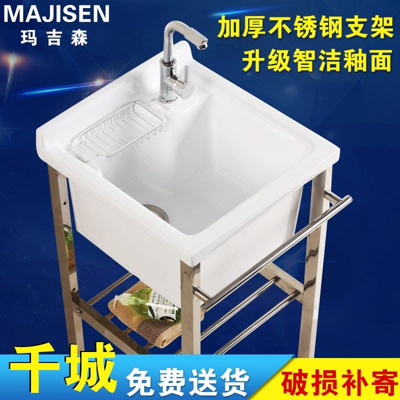 Ultra-deep enlarged ceramic balcony laundry basin stainless steel bracket washbasin square washbasin outdoor washbasin