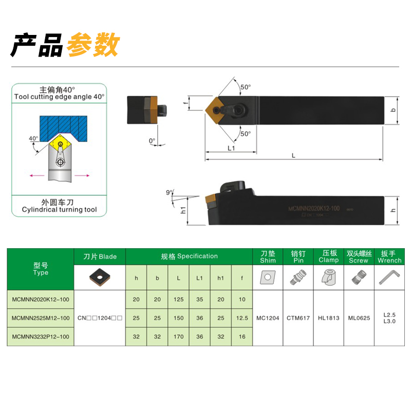 CNC tool holder 40 degree external turning tool MCMNN2020K12 2525M12 3232P12-100 Lathe tool holder