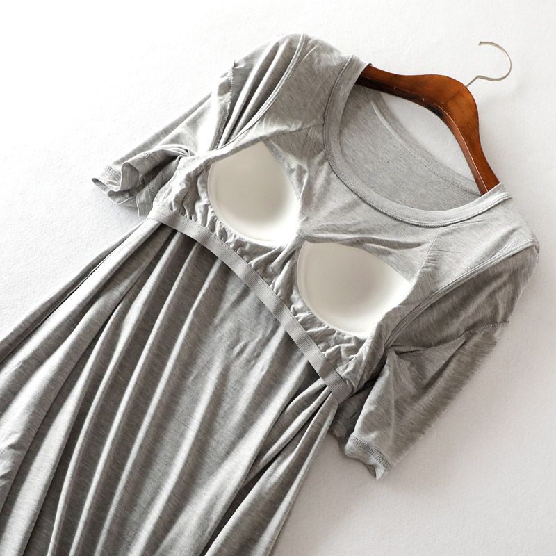 Modale Sleeping Dress Woman Summer With Chest Cushion Integrated Short Sleeve Medium Long Version Straight Cylinder Loose Thin Cartoon Pyjamas Dress Skirt