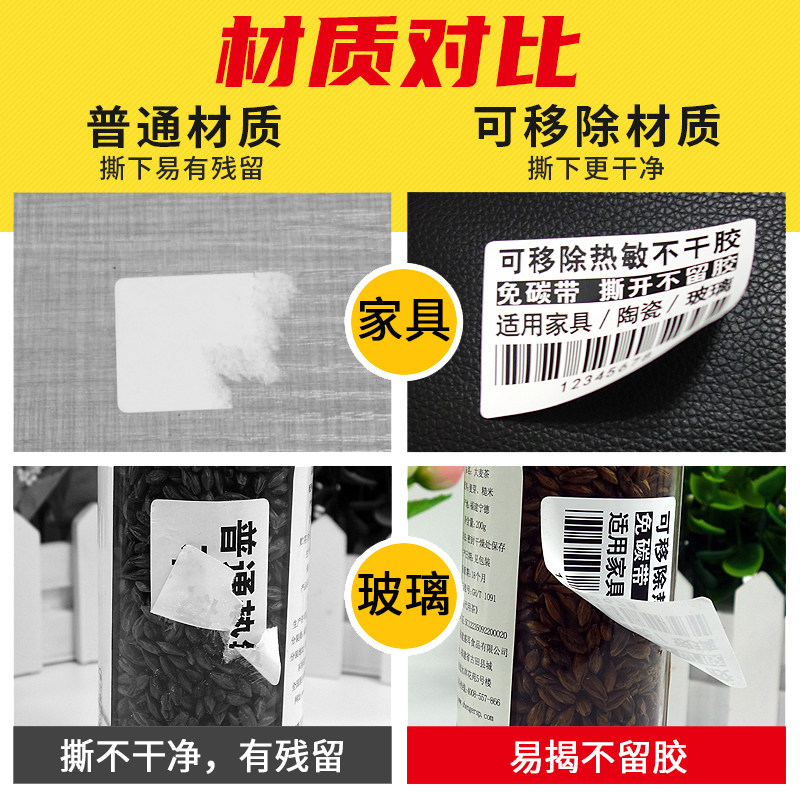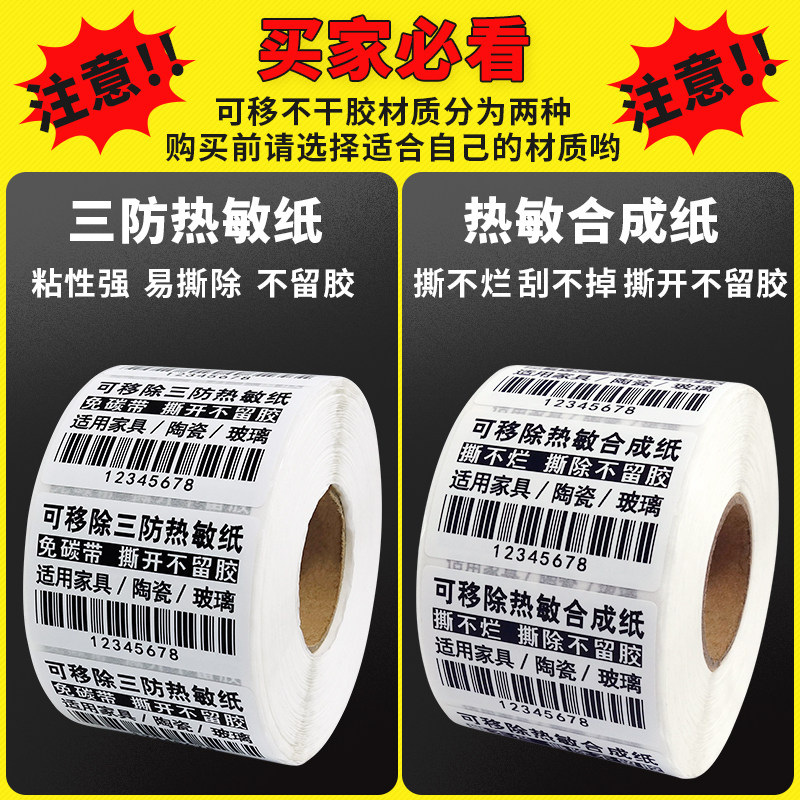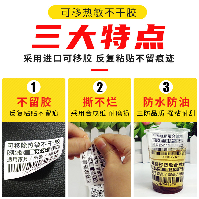Jaylen removable self-adhesive label paper 60*40 30 50 60 70 80 100 furniture glass plate thermal photocopy paper easy to tear seamless synthetic paper three waterproof adhesive sticker