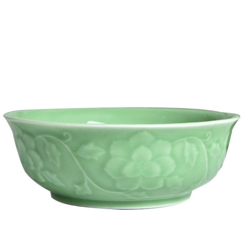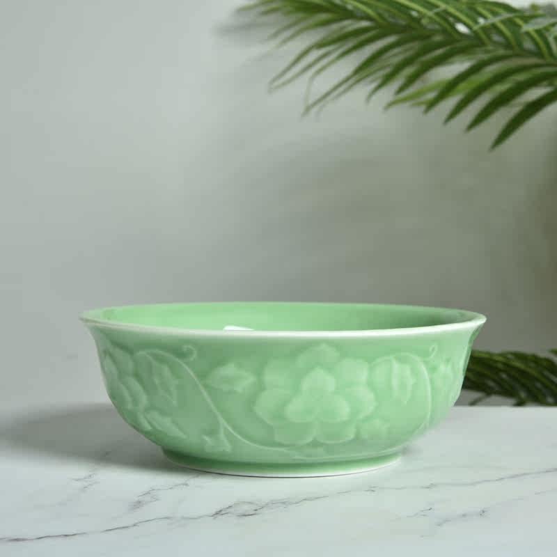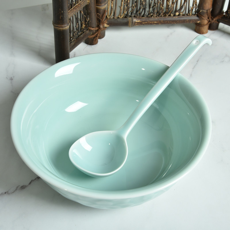 Home Ceramic Bowl Large Size Pull Noodle Bowl Salad Bowl Dragon Springs Green Porcelain Noodle Bowl Chinese Thickened Soup Bowl Microwave Oven Available