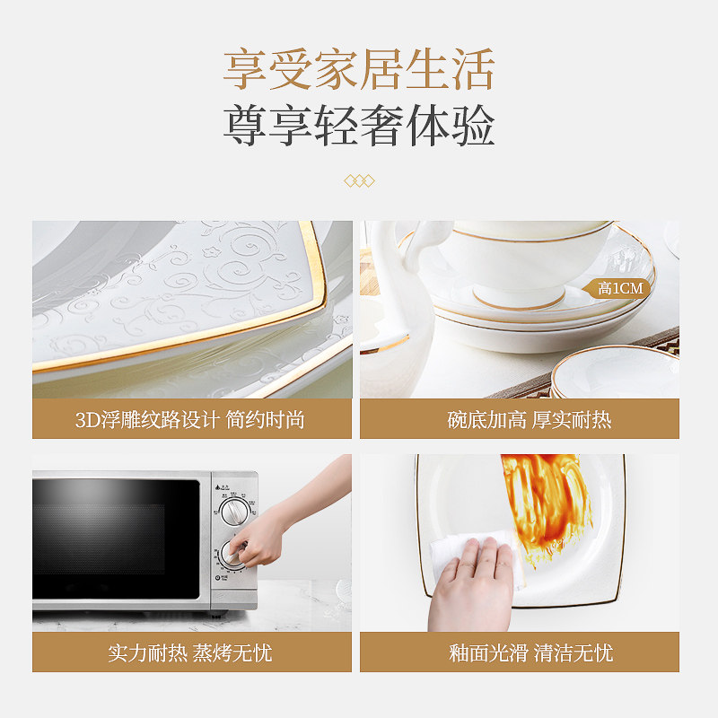 56 pieces of round gold Ruyi matching pot (microwave dishwasher) send casserole fruit plate 56 pieces square gold Ruyi standard version (can microwave dishwasher) send casserole fruit plate fruit plate 60 pieces round gold Ruyi