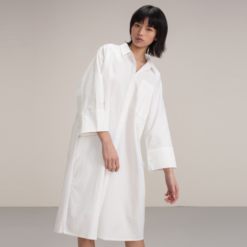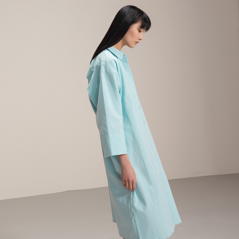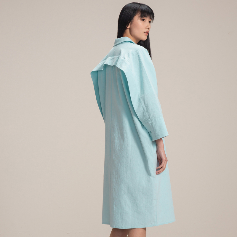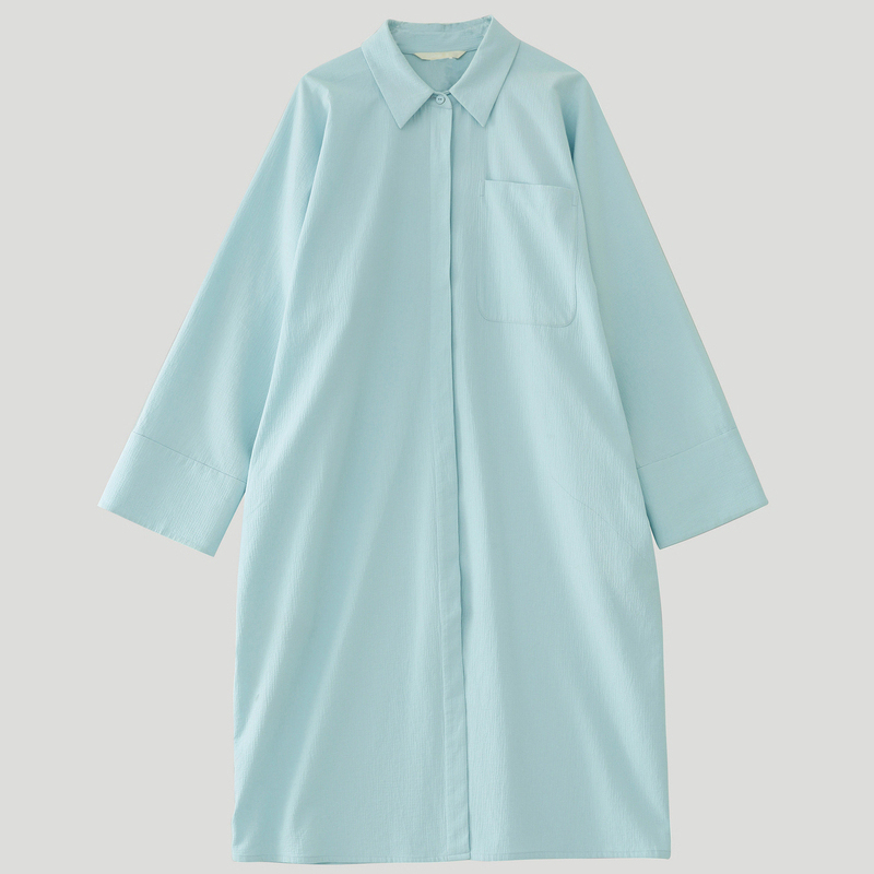 Broadcast summer new lapel loose temperament solid color simple medium and long version of the shirt dress women BDN2LD256