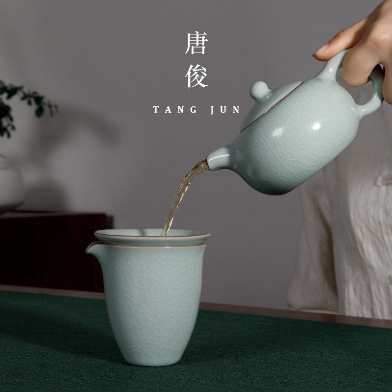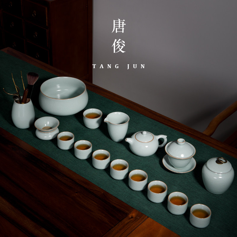 Yu kiln cupboard teapot set ceramic ice crack household kung fu tea set high-end gift box Jingde Town