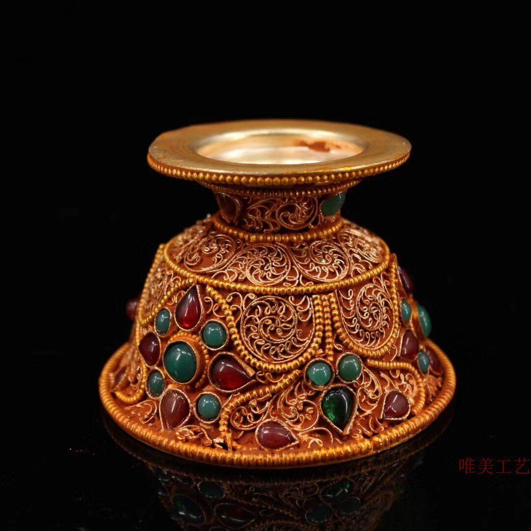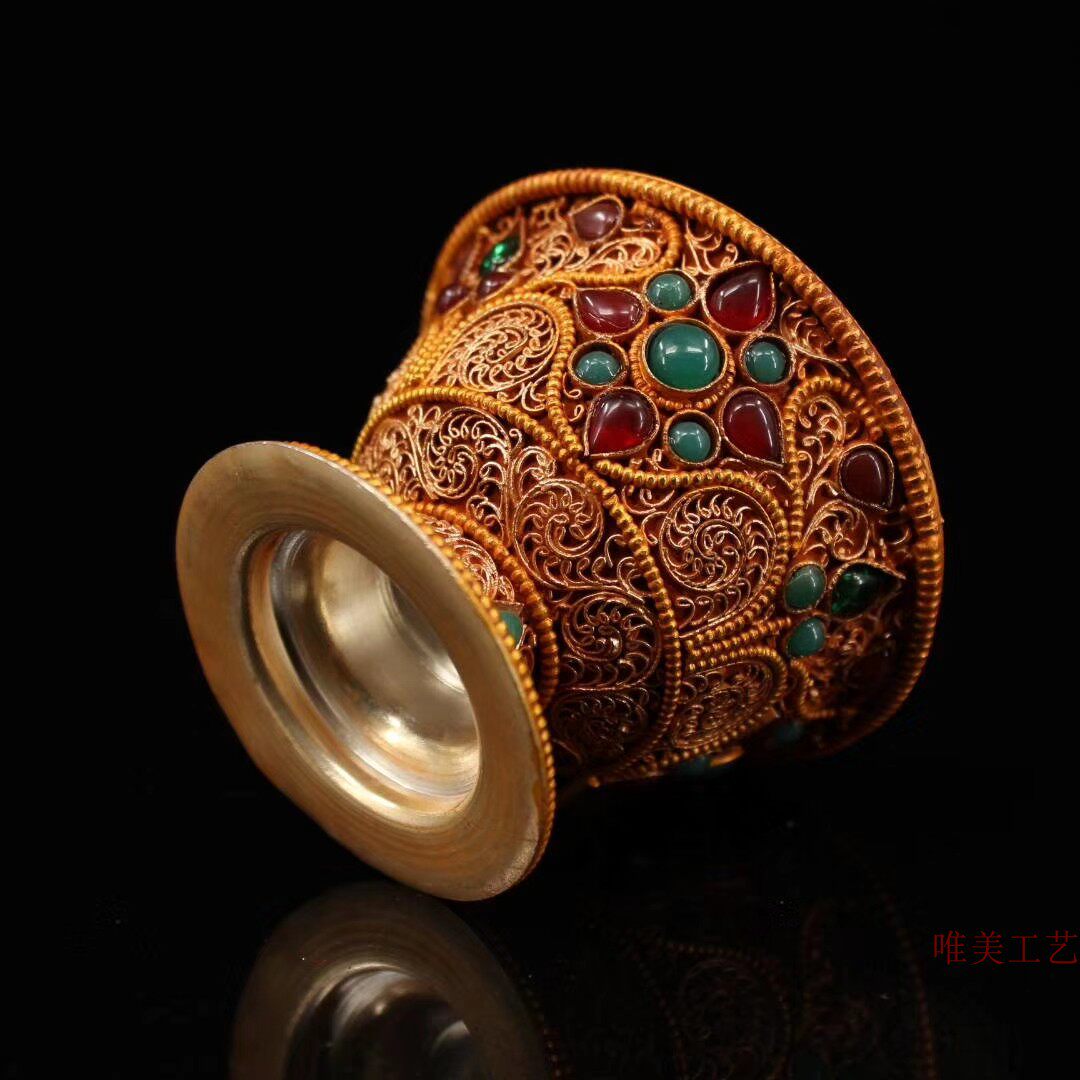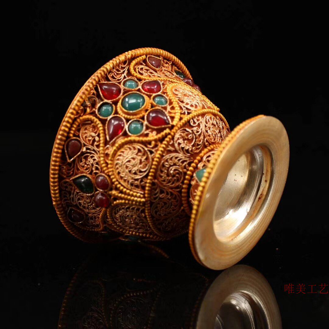 Old Yixuan old pure silver pinched silver pinched with embedded jewel gift " water bowl " cup supply "
