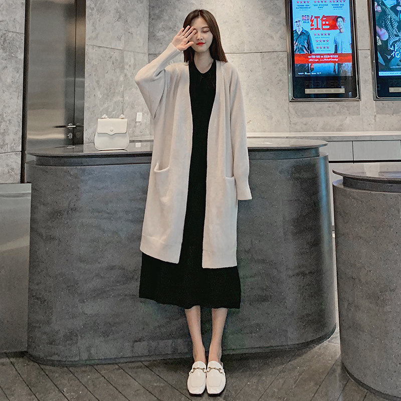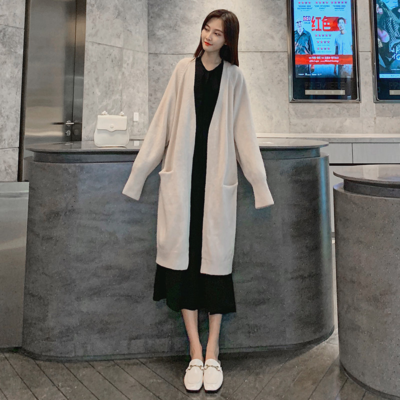 Long dress Black Almond Color Big Pocket Coat Black Ocean Dress