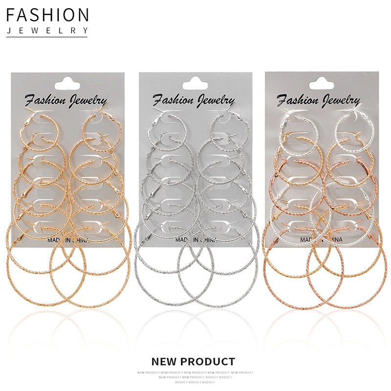 European and American cross-border hot selling size circle earrings suit 6 pieces of ear ring rock punk Exaggerated Personality Earrings