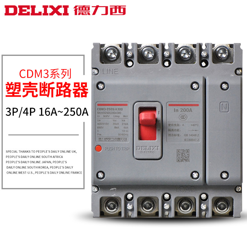 Delixi CDM3 plastic case circuit breaker three-phase four-wire 3p4p100a 160a overload protection air switch 380