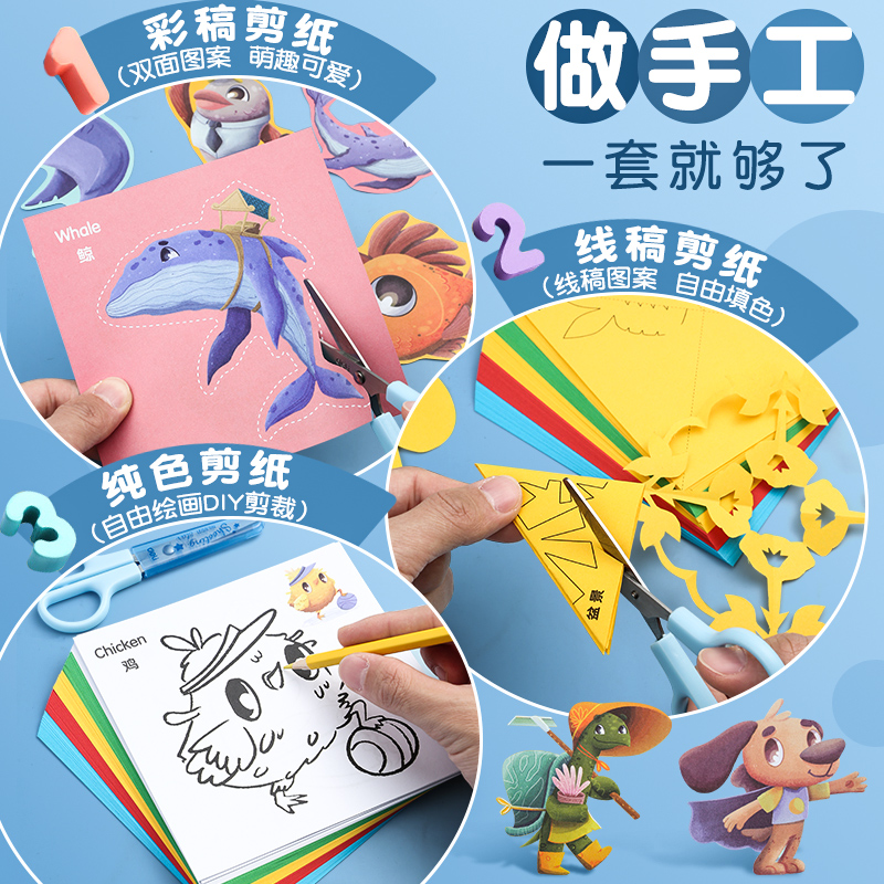 Advanced children's hand-made color paper cutting package after class to improve hands-on ability to reduce the burden of primary school students color photoprinting paper pattern primary simple folder diy production materials into the door Young tool