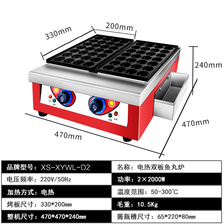 Commercial electric heat Japan octopus pellet machine double plate baking pan shrimp pulling egg to make pellet machine fish pellet stove plate