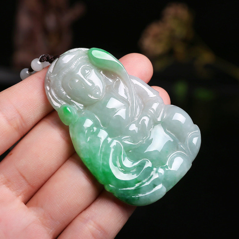 Xiang Zhenfu "at ease with Guanyin" natural emerald pendant floating green Guanyin hanging decoration Xu refiner Solitary Products