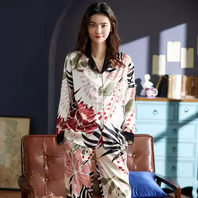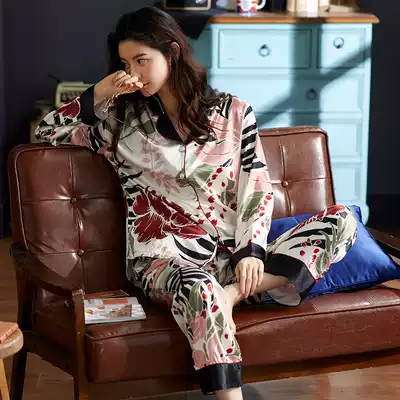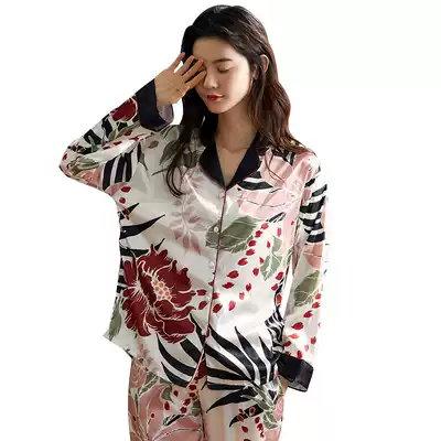 Antarctic pajamas female spring and autumn thin ice silk long sleeve home clothing simulation silk summer leisure two-piece suit