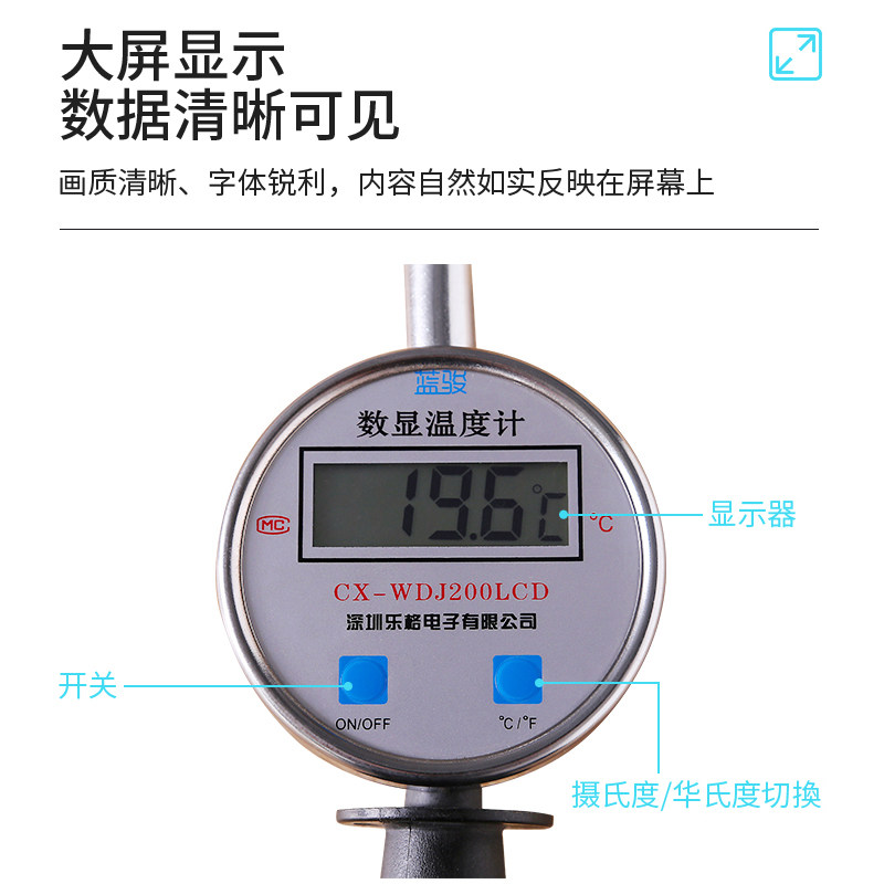 Handheld digital display thermometer plug-in lengthening probe rod needle test grain wine-making cellar ground temperature organic fertilizer grass stacking agriculture
