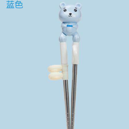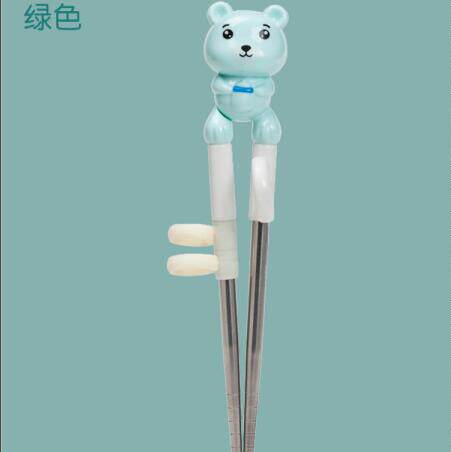 Pink Small Bear Stainless Steel Training Chopstick Blue Small Bear Stainless Steel Training Chopsticks Green Small Bear Stainless Steel Training Chopsticks