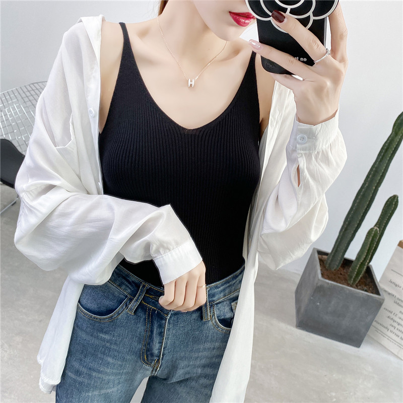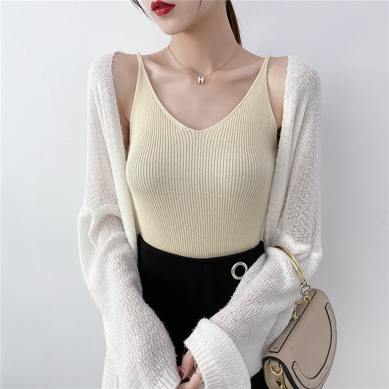 Spring and summer before and after the V-neck slim knitted camisole inside the camisole female summer outside wear leaky back sexy top vest