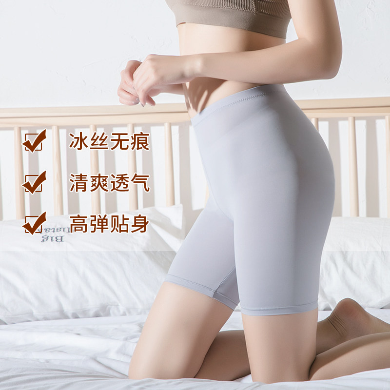 Ice silk large size safety pants women's anti-running non-rolling inner pants outer wear summer high waist plus fat thin five-point pants