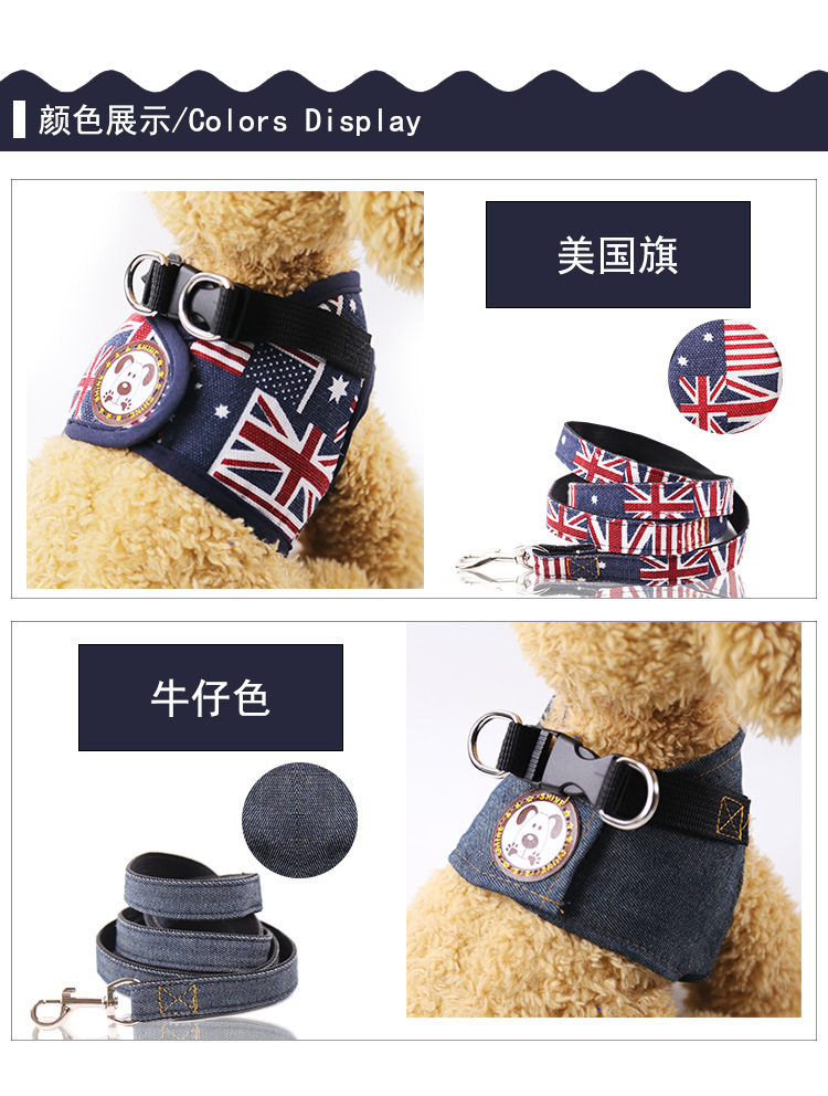 Spring and summer new Teddy cat small and medium-sized dog vest type traction rope cowboy chest hug baby bag dog rope four seasons universal
