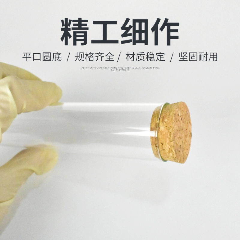 Glass test tube wooden stopper flat mouth round bottom test tube diameter 12 13 15 18 20 25 30mm test tube with cork single price can be customized
